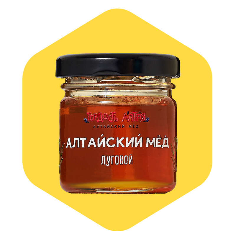 Алтайский луговой мёд, получают пчёлы с нектара множества луговых и полевых растений: одуванчика, клевера, шалфея, донника, ромашки и других дикорастущих культур. Цвет продукта варьируется от светло-жёлтого до тёмно-коричневого, зависит от преобладания медоносов. Мёд обладает характерным ароматом трав и цветов.